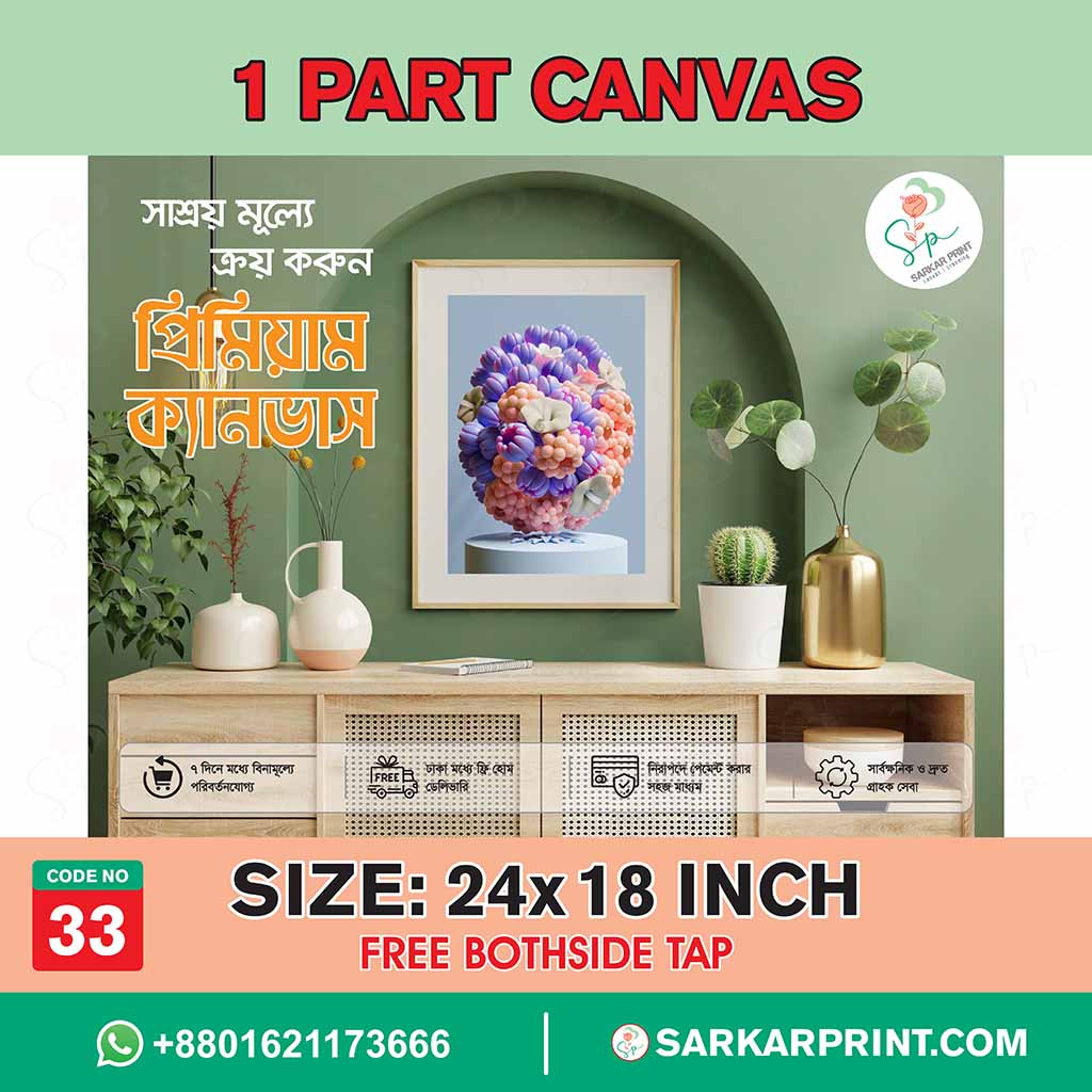 Elevate your interior design with this unique 1-part premium canvas wall art featuring a stunning 3D abstract floral sphere. The artwork showcases a dense, spherical arrangement of textured blossoms in elegant shades of purple, lavender, and soft peach, presented on a minimalist pedestal. This high-definition print on premium quality canvas offers a modern, sculptural feel that adds depth and artistic sophistication to any living room, bedroom, or contemporary office space.