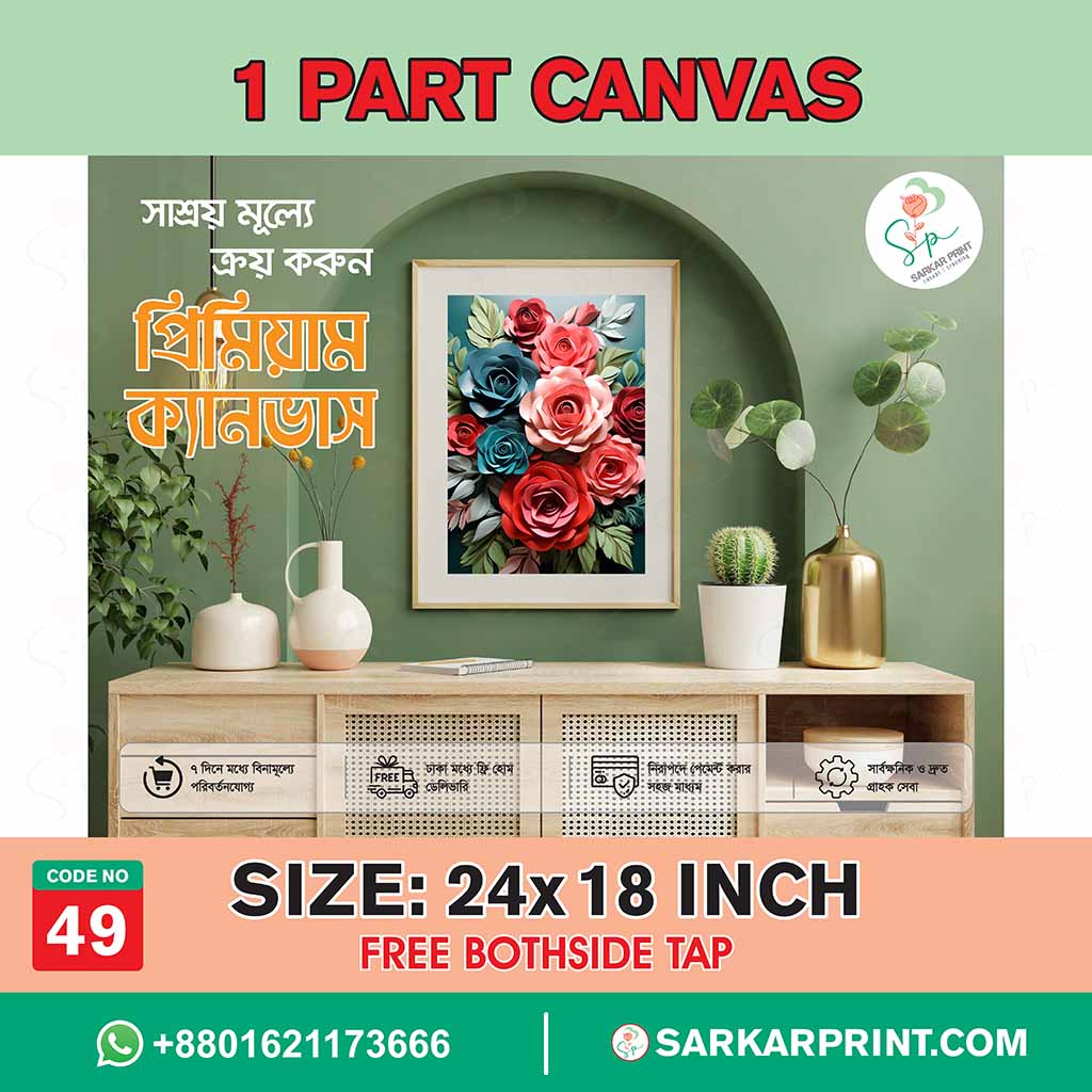 Elevate your decor with the 24×18 inch 1-Part Red and Blue Rose Canvas (Code 49). Features a high-quality premium floral print and includes free installation tape.
