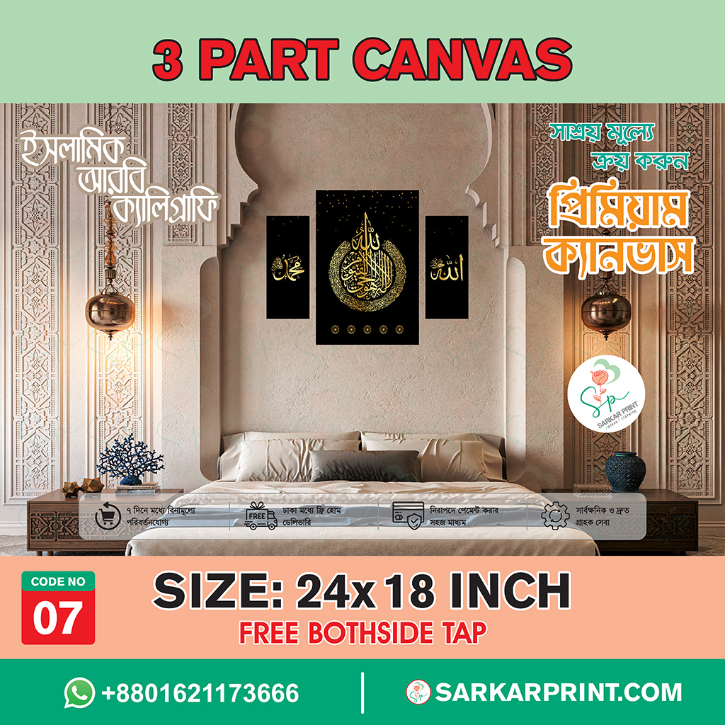 Premium 3 Part Islamic Arabic Calligraphy Canvas – Code 07