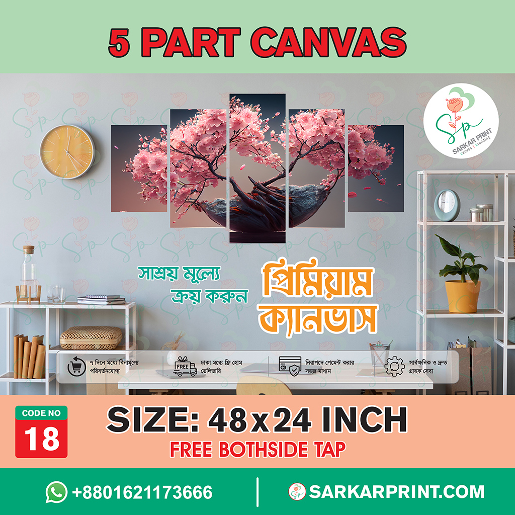Transform your walls with the 48×24 inch 5-Part Abstract Golden Tree & Moon Canvas (Code 18). This high-quality premium set features vivid colors and includes free double-sided tape for easy, drill-free installation.
