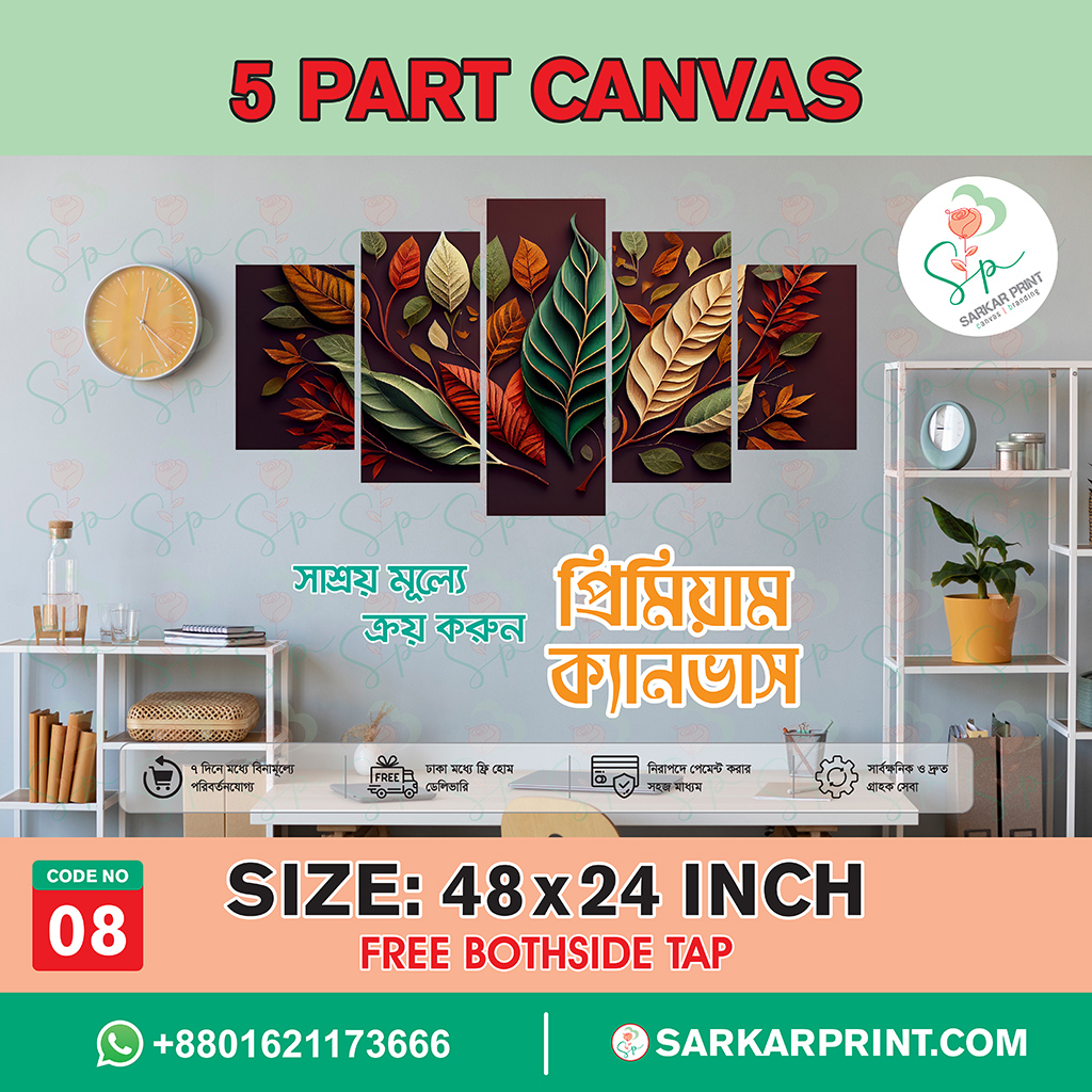Enhance your home or office interior with this stunning 5-part premium canvas wall art from Sarkar Print. This artwork features a sophisticated floral abstract design with rich golden and teal tones, creating a modern and luxurious atmosphere in any room. The high-quality canvas print ensures vibrant colors and long-lasting durability for your wall decor.