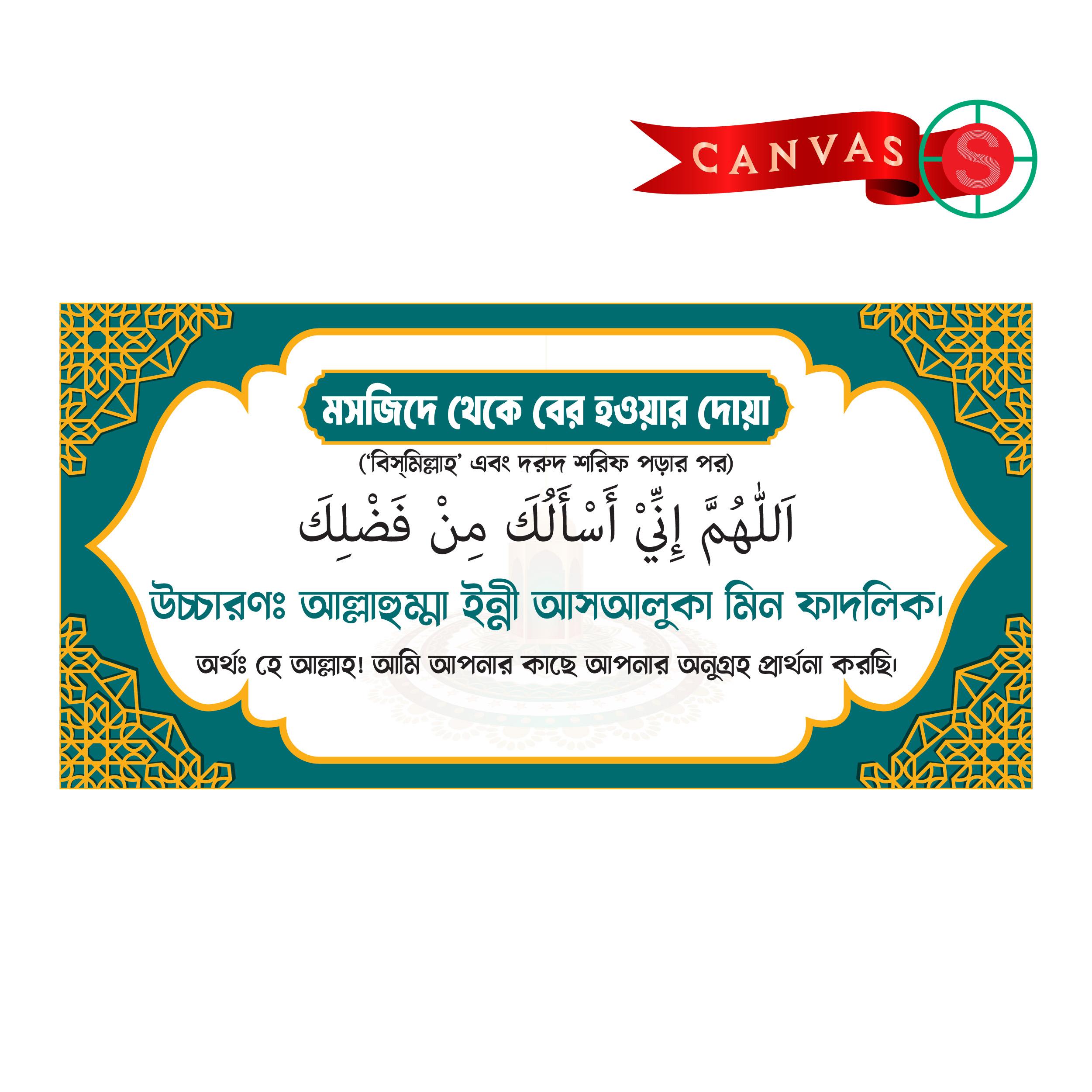 The Premium Islamic Mosque Dua Wall Canvas Set features two essential Sunnah supplications—the dua for entering the mosque and the dua for leaving the mosque—printed on high-quality 3mm PVC boards. Each panel presents the Arabic text with Bengali pronunciation and meaning in a beautiful teal and gold Islamic design, finished with premium lamination (Zigzag, Glossy, or Matte). 1 Year AL Jazeera Brand Warranty. 30 Day Return Policy. Cash on Delivery available.